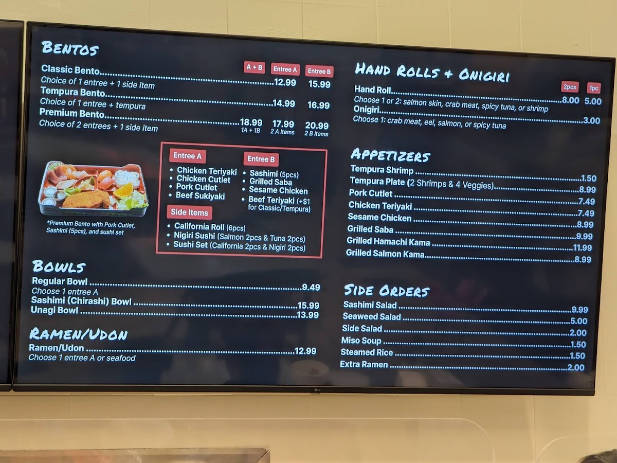The dining atmosphere is lively yet casual, making it an ideal spot for either a quick lunch or a leisurely dinner. The open layout of the food court allows you to soak in the energetic vibe, while still enjoying your meal in a relaxed setting. As customer Leonard Smith notes, the quality of the sashimi remains consistently good, adding a delightful freshness to the bento experience.